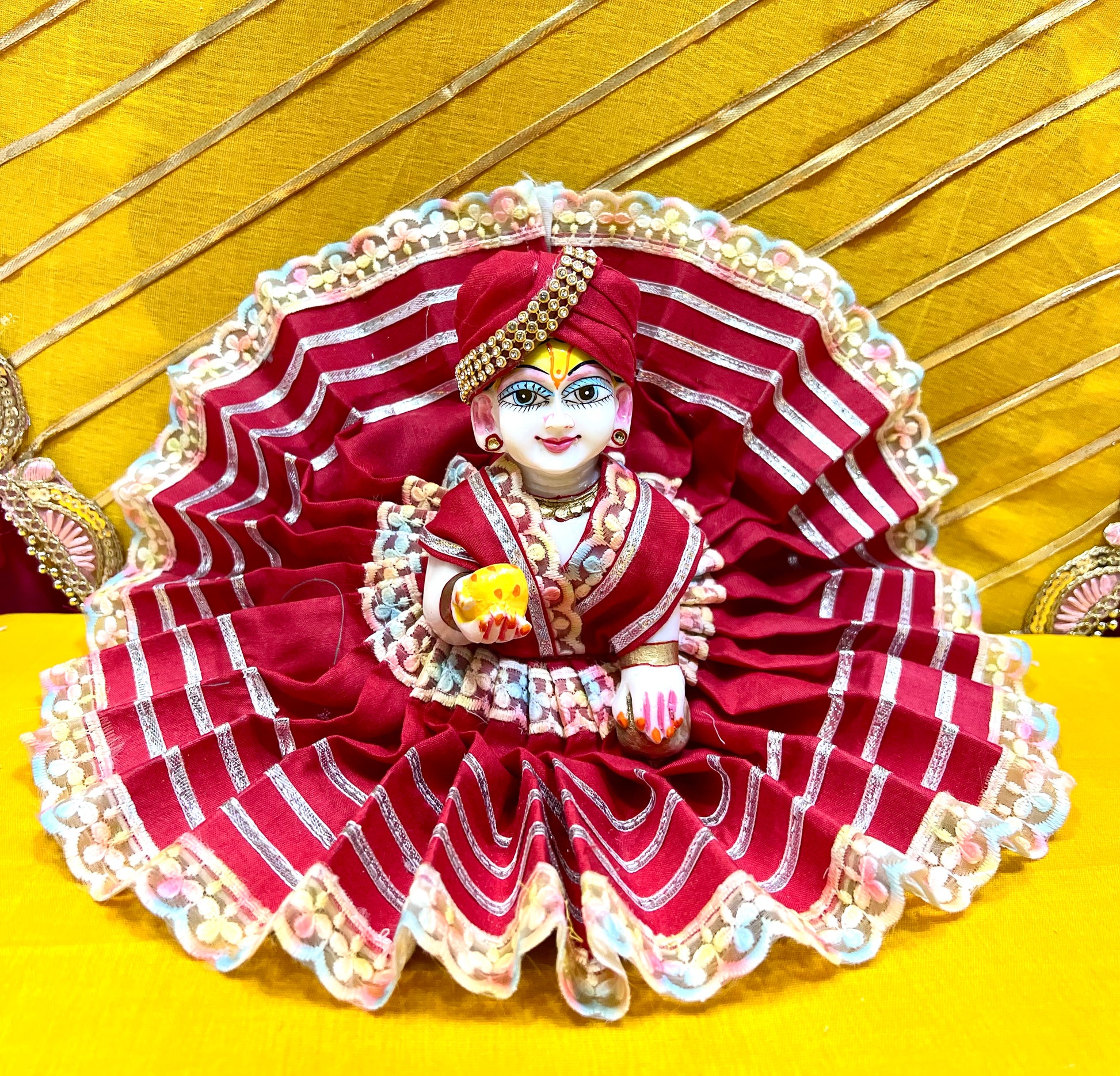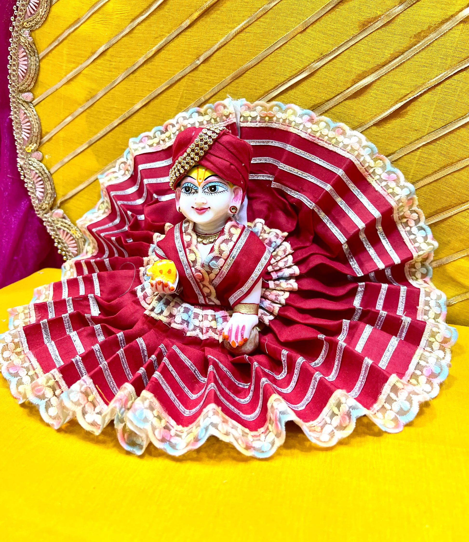 Give your Laddu Gopal a majestic look with this vibrant maroon dress set β designed to reflect royalty, devotion, and charm. Ideal for Janmashtami, poojas, or festive gifting!