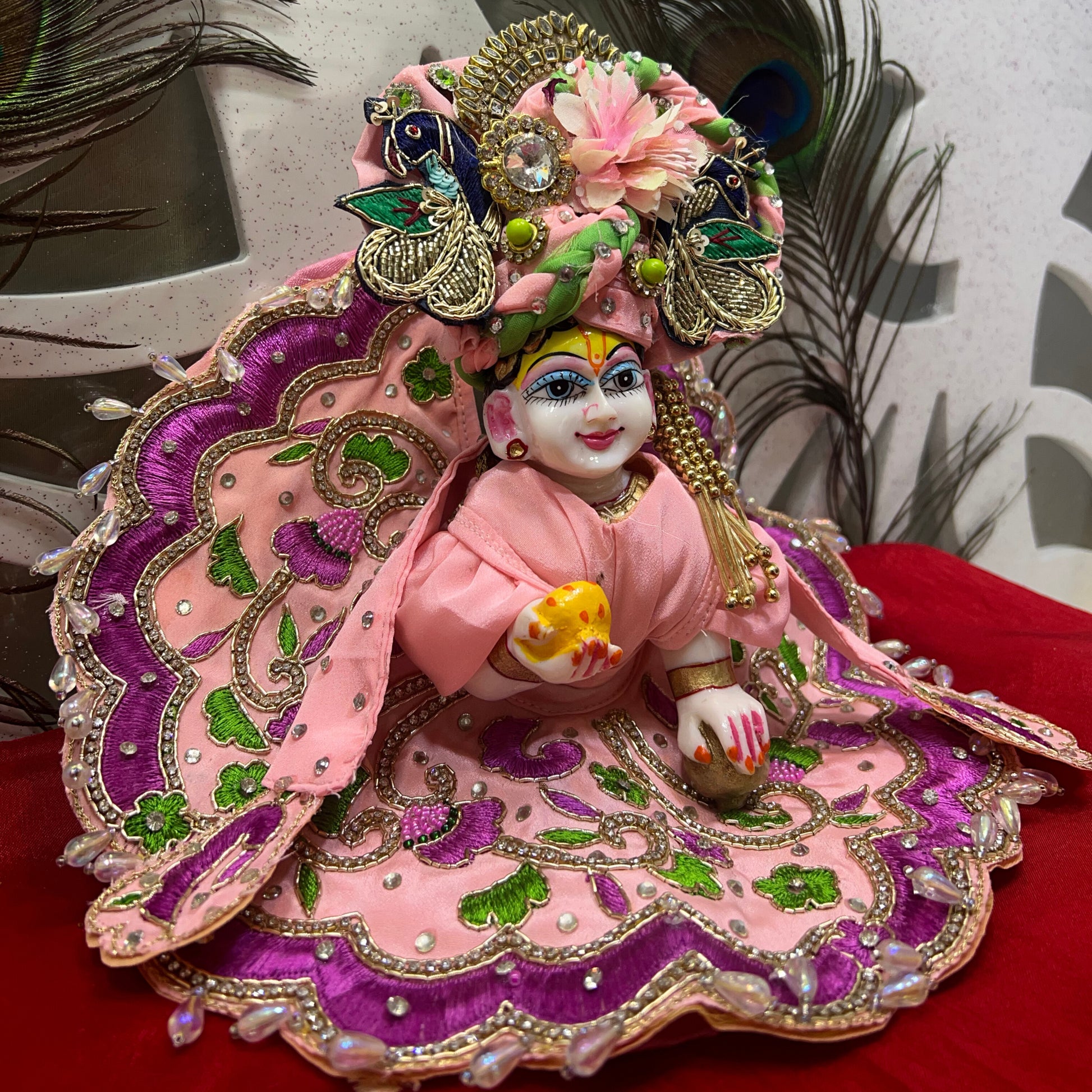 Elegant Pink Embroidered Laddu Gopal Dress Set with Crown & Accessories